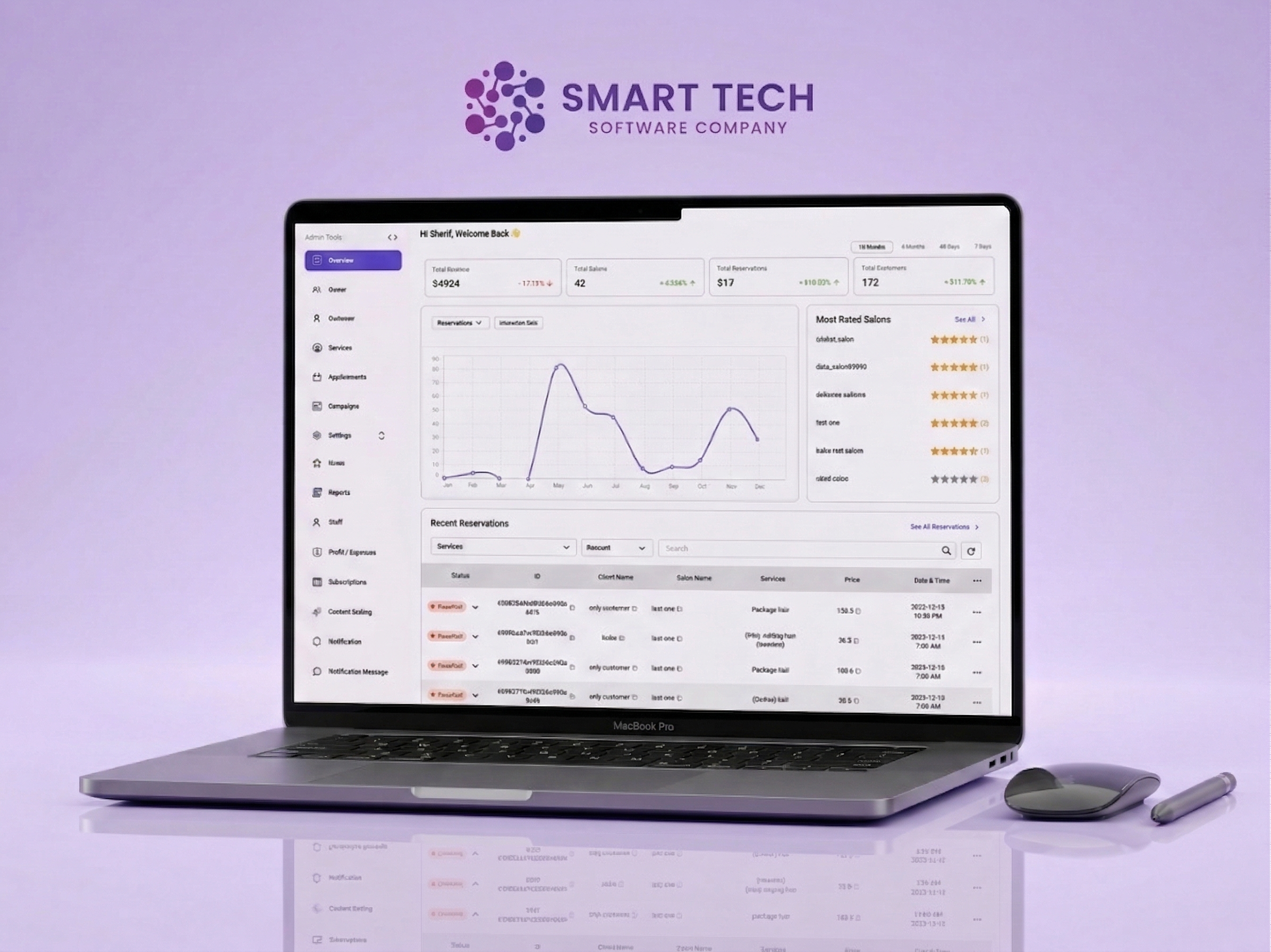 يتيح النظام إدارة المستخدمين، الصالونات، الحجوزات، التقييمات، والإبلاغات من خلال واجهة موحدة، مما يساعد فريق الإدارة على متابعة العمليات اليومية والتعامل مع المشكلات بسرعة.